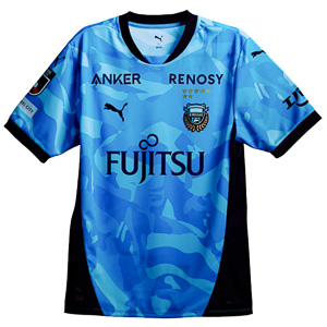 必勝祈願を行うホームタウン川崎を象徴する寺社からインスピレーションを受け、伝統的な川崎ブルーに縦のストライプと幾何学的にパターン化された飾り金具を模したデザイン。またユニフォームデザインの中には、ホームゲームの際、等々力陸上競技場に設置されている”川崎必勝だるま”が隠されています。