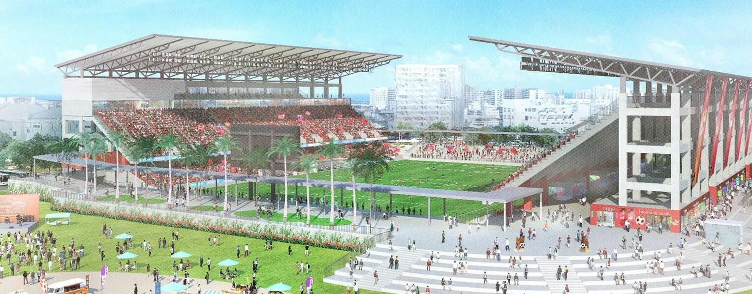 沖縄県那覇市の奥武山公園に、Jリーグ1部規格のスタジアムを整備する計画。スタジアムを2万人規模で整備する手法で、まず1万人規模で整備した後に2万人規模へ段階整備し、2万5000人収容を予定。