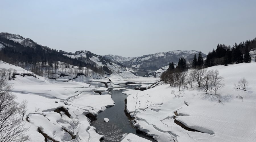 新潟の雪流れは魚沼市・破間川ダムで見れる