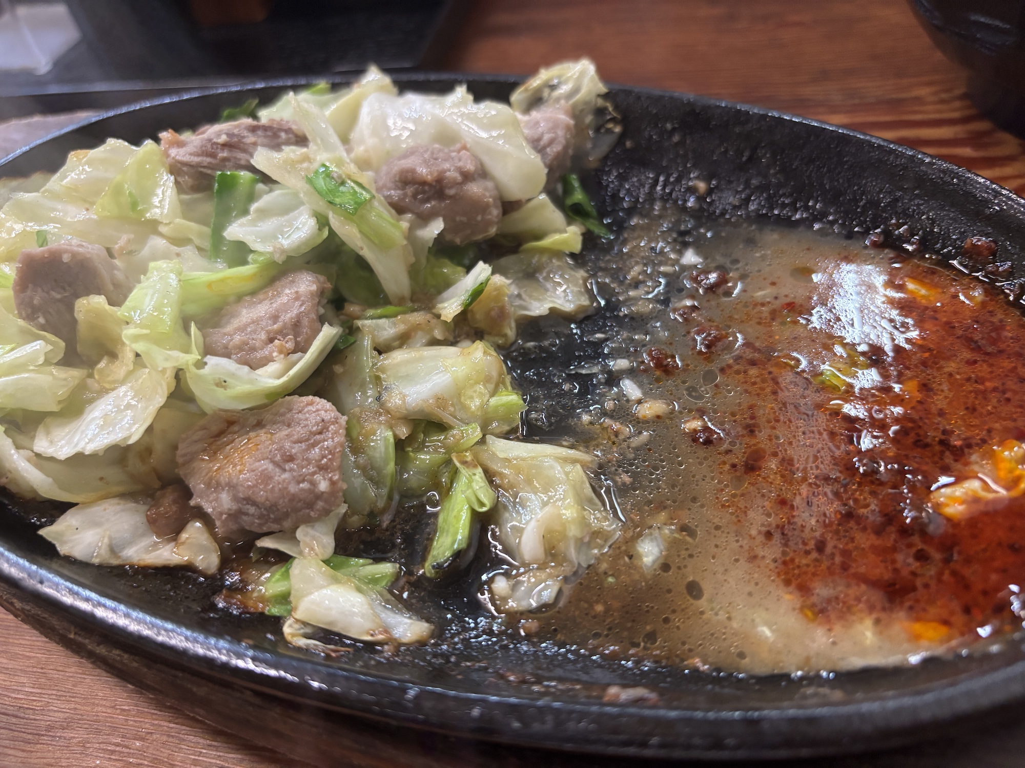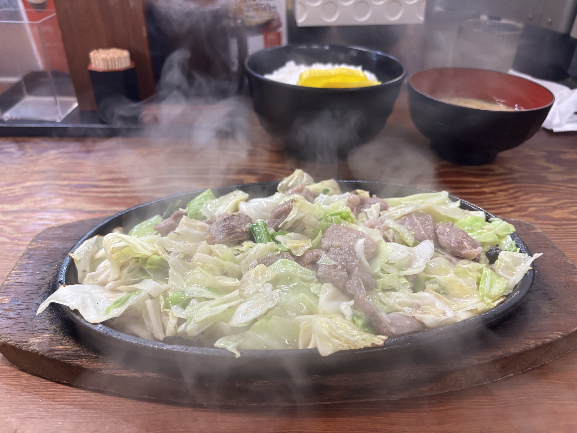 厨房で豪快に炒められた「豚のサガリ(ハラミに近い部位)」と「大量のキャベツ」が、熱々の鉄板に乗ってジュージューと音を立てながら運ばれてくるのです。 - 模倣店を生むほどのカリスマ性