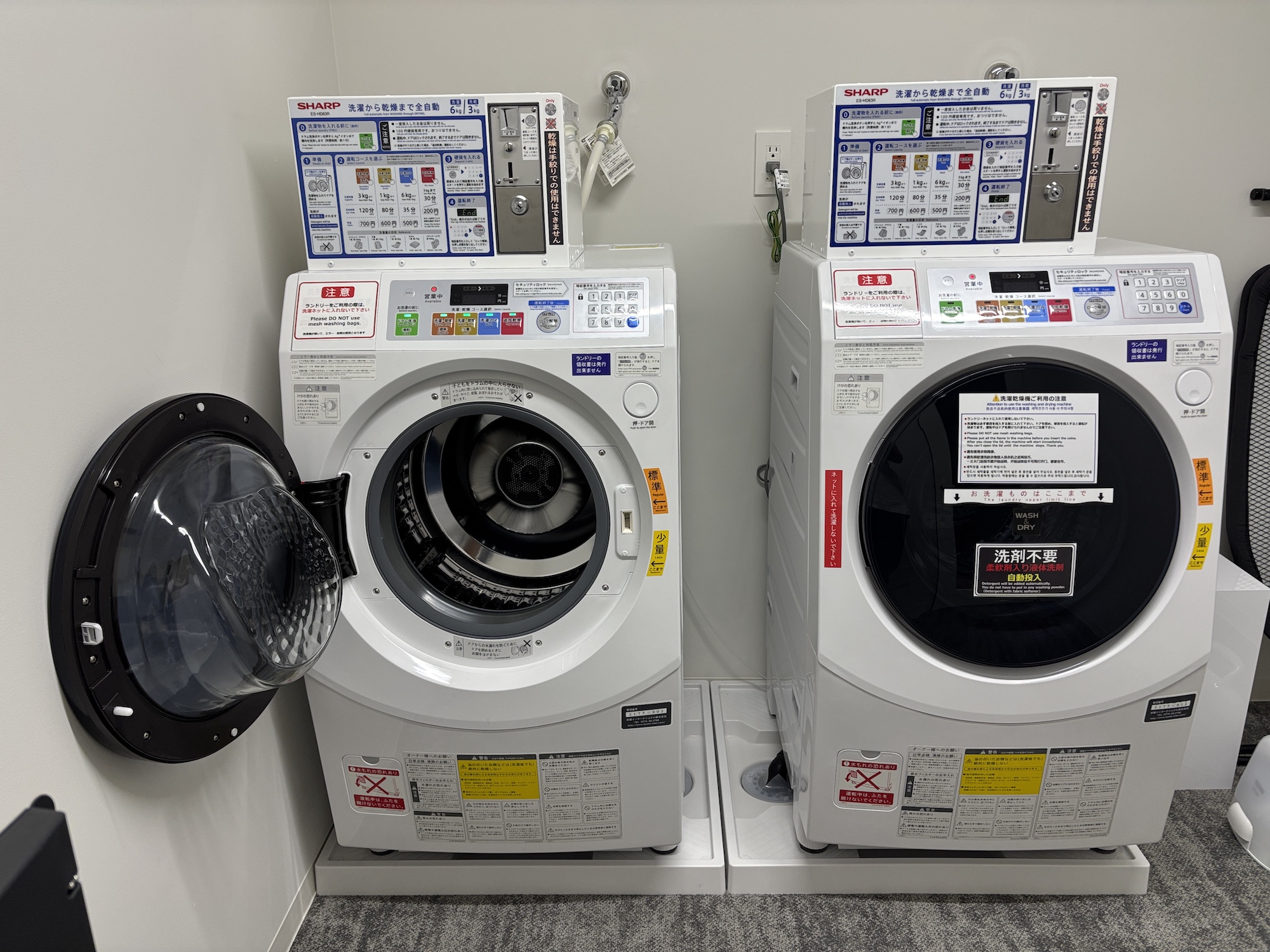 全自動ランドリーもあり、長期宿泊にも嬉しい。