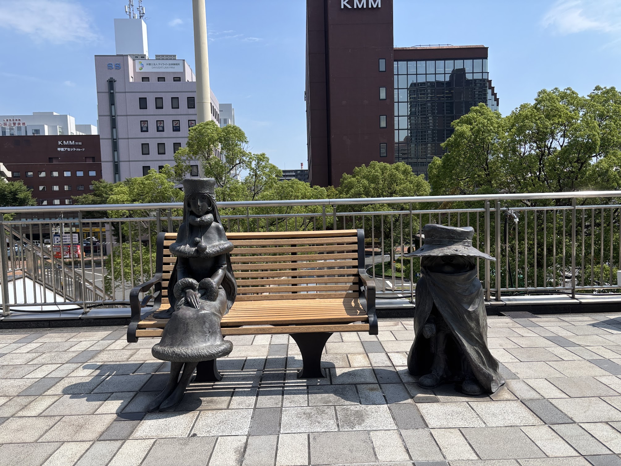 • 銀河鉄道999のブロンズ像: 小倉駅新幹線口(北口)を出てすぐのペデストリアンデッキには、メーテルと鉄郎、そしてキャプテン・ハーロックの像が佇んでいます。まるでこれから宇宙の旅に出かけるかのような旅情を誘います。