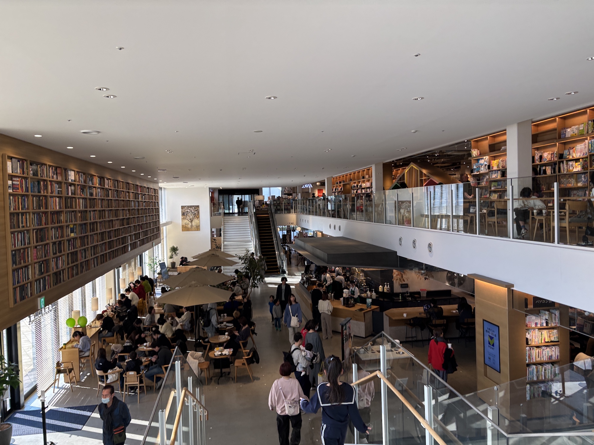 蔦屋書店との連動:広場に面した「名古屋みなと 蔦屋書店」では、購入前の本を読みながらコーヒーを楽しめる、穏やかな時間が流れています。