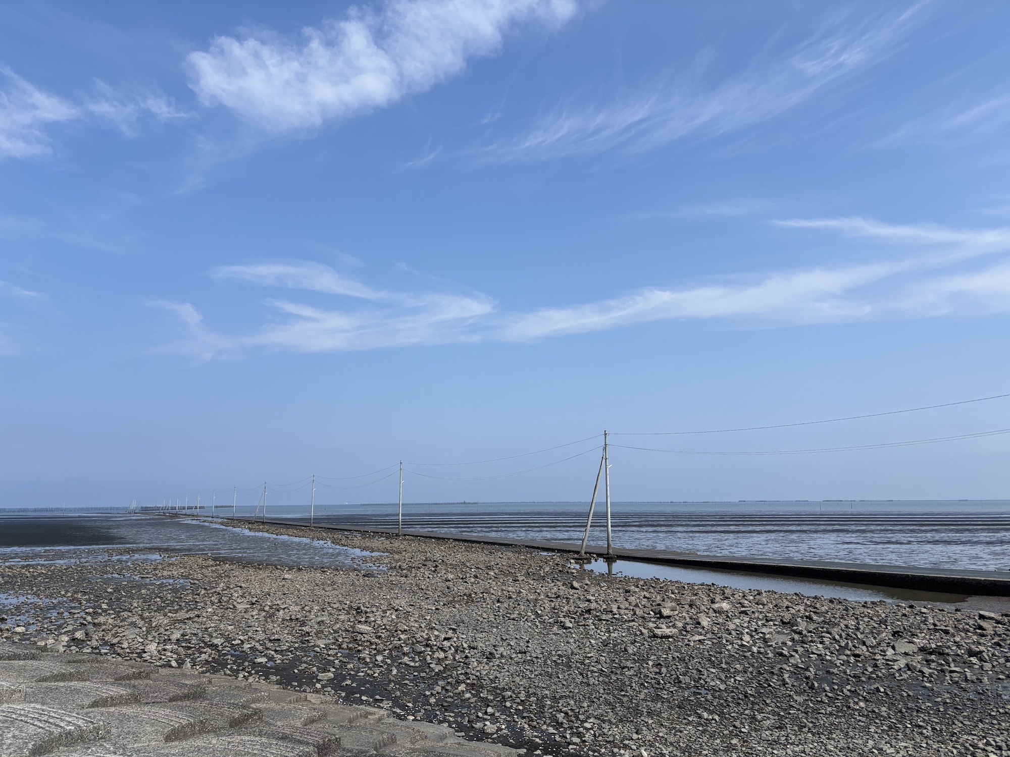 有明海は干満の差が非常に激しく、干潮時には遠浅の干潟が広がります。そのため、船を出す漁師さんたちが、潮が引いている時でもトラックで船まで近づけるようにと1978年に建設されました。観光のために作られたものではなく、人々の生活を守るために生まれた機能美が、この幻想的な風景を作り出したのです。