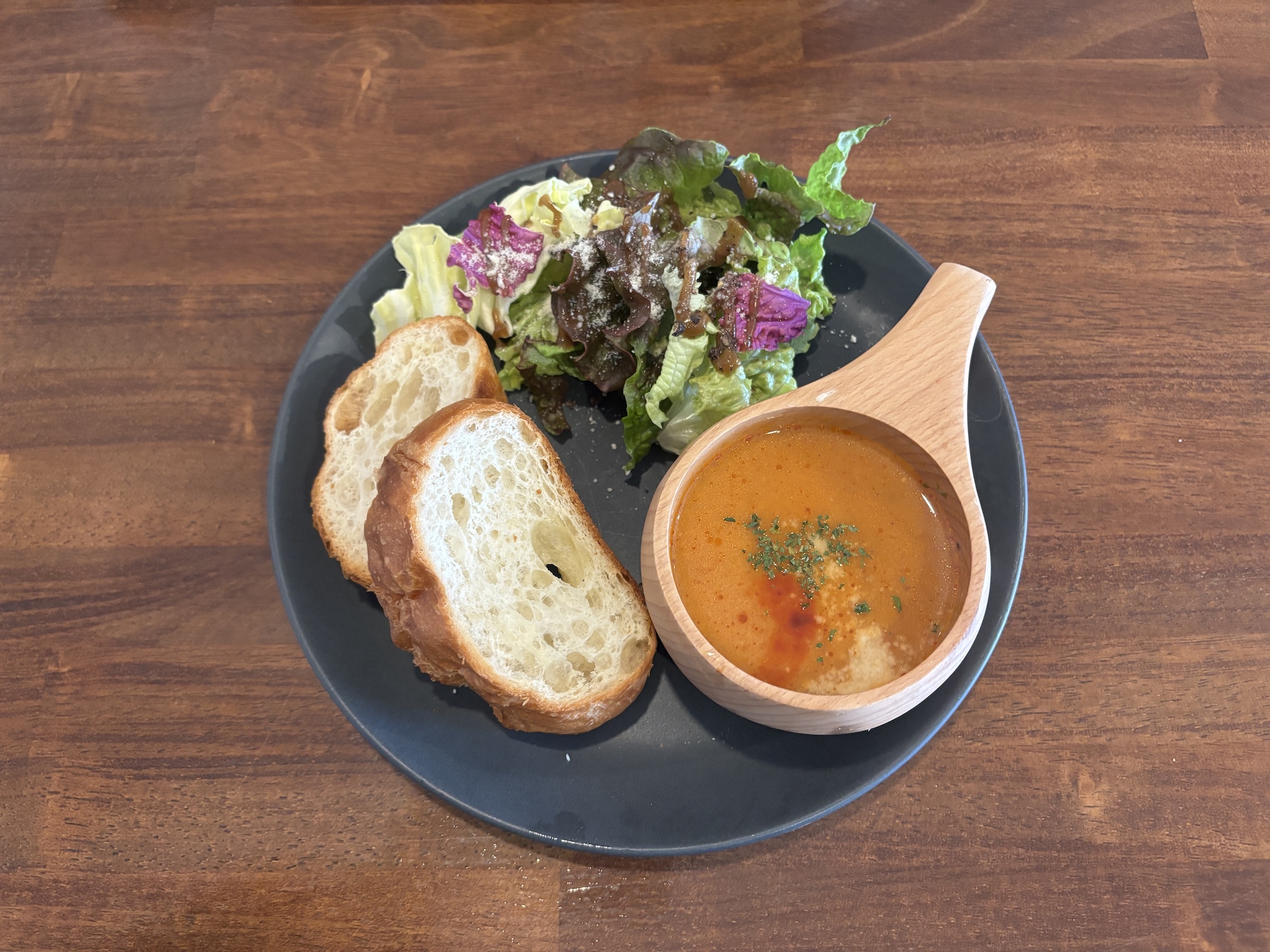 朝7時30分からオープンしているこのお店では、焼きたてのパンと、素材の旨みが凝縮されたスープのセットが楽しめます。
