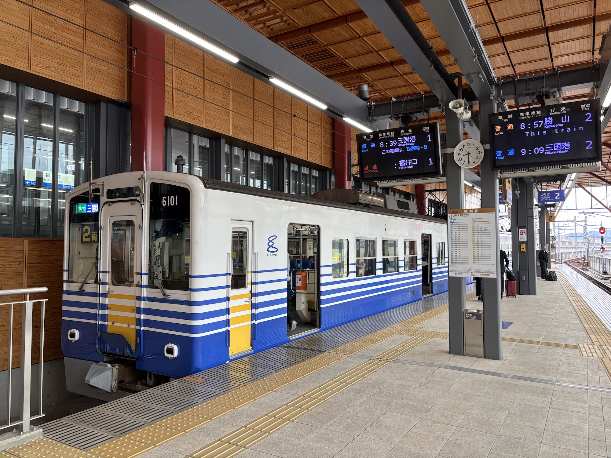 福井駅から東尋坊へは、鉄道とバスを組み合わせるルートが一般的です。旅の情緒を楽しめるローカル線の旅は、東尋坊への期待感を高めてくれます。