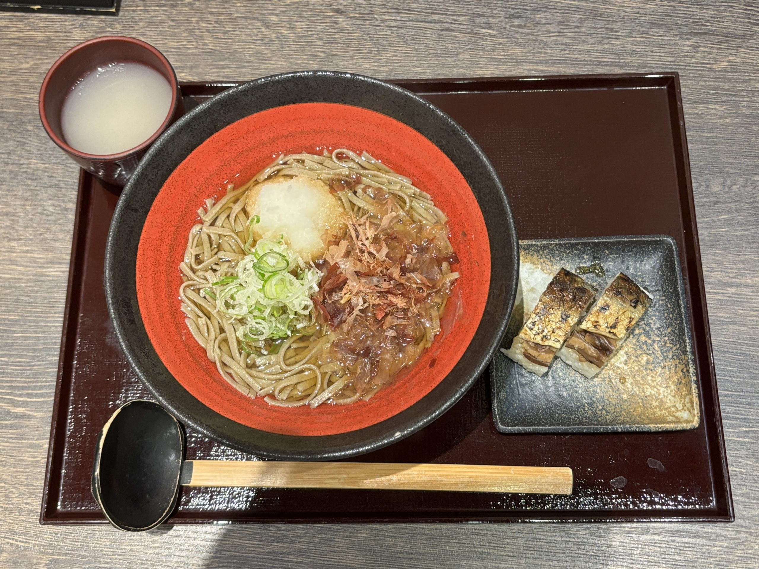 福井駅駅前のハピリン1階にある蕎麦屋さん。観光客で賑わうランチタイムには並ぶこともありますが、平日の夜はすぐに入れました。かけそばにも大根おらしがトッピングされていて満足。焼き鯖寿司も福井名物ですよね。おいしかったです。蕎麦湯が付いてるのもよい。