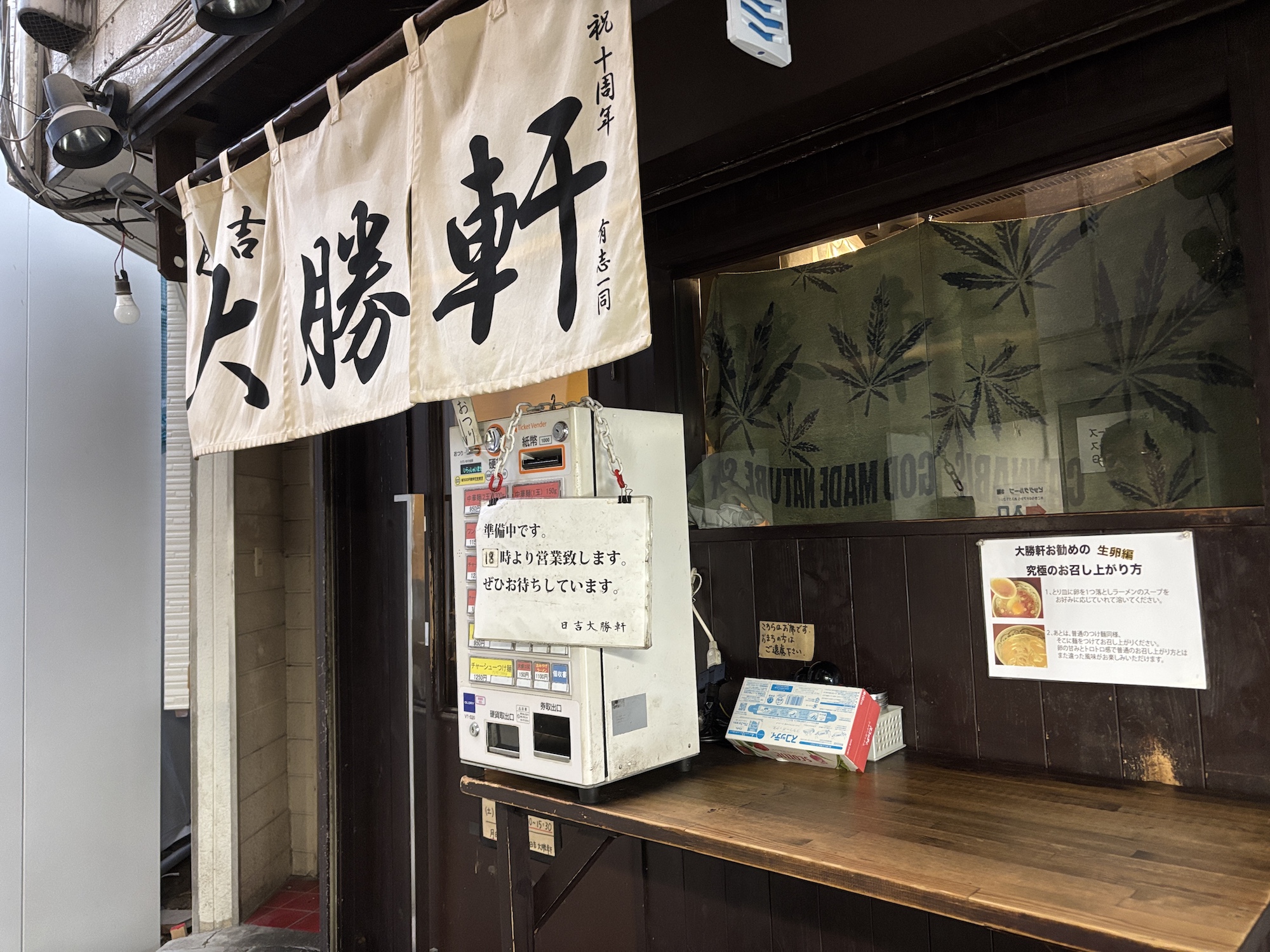日吉にある大勝軒は永福町系で、一般的に有名になった東池袋系の大勝軒ではない。それを知らない方はだいたいつけ麺をオーダーされてる。デフォルトで2玉の大盛りに味変用の生卵。今回は1玉にしたが、でかい器に細麺の中華そば。出汁かおるスープが懐かしい。浜銀通りから少し路地裏に入るので一見見逃してしまいそうな小さな店。