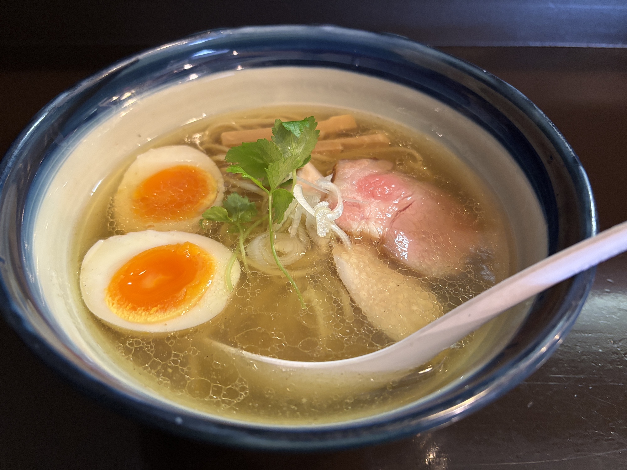 あっさりスッキリしたスープと麺、豚と鶏のチャーシューがデフォルト。そこに味玉を追加しました。全体的に優しい印象で、昆布出汁も入ってますかね。あっさりの中にも昆布の風味を感じました。価格的にも良心的でうれしい。
