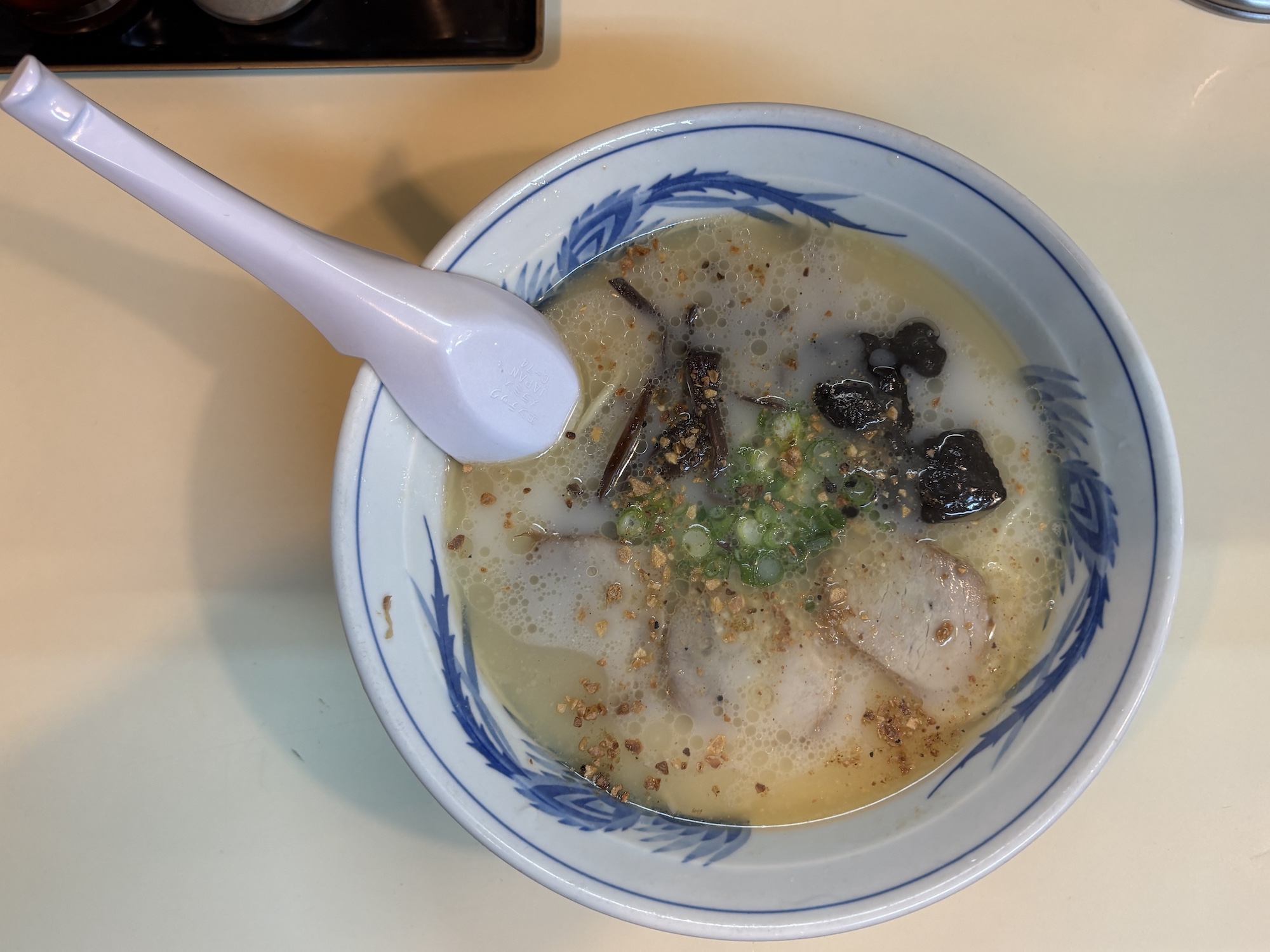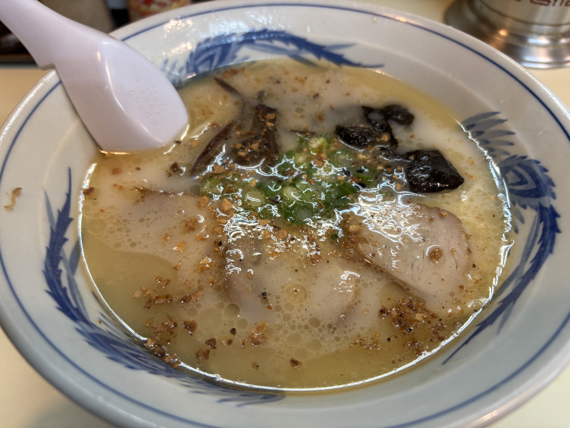 熊本ラーメンを代表する店。むかし新横浜ラーメン博物館にも出して超人気でしたね。久しぶりに食べたけど、ガーリックチップがきいた濃厚豚骨。うまかっちゃんのスープに近い感じだったけど、ここの味に寄せたのだろうか。