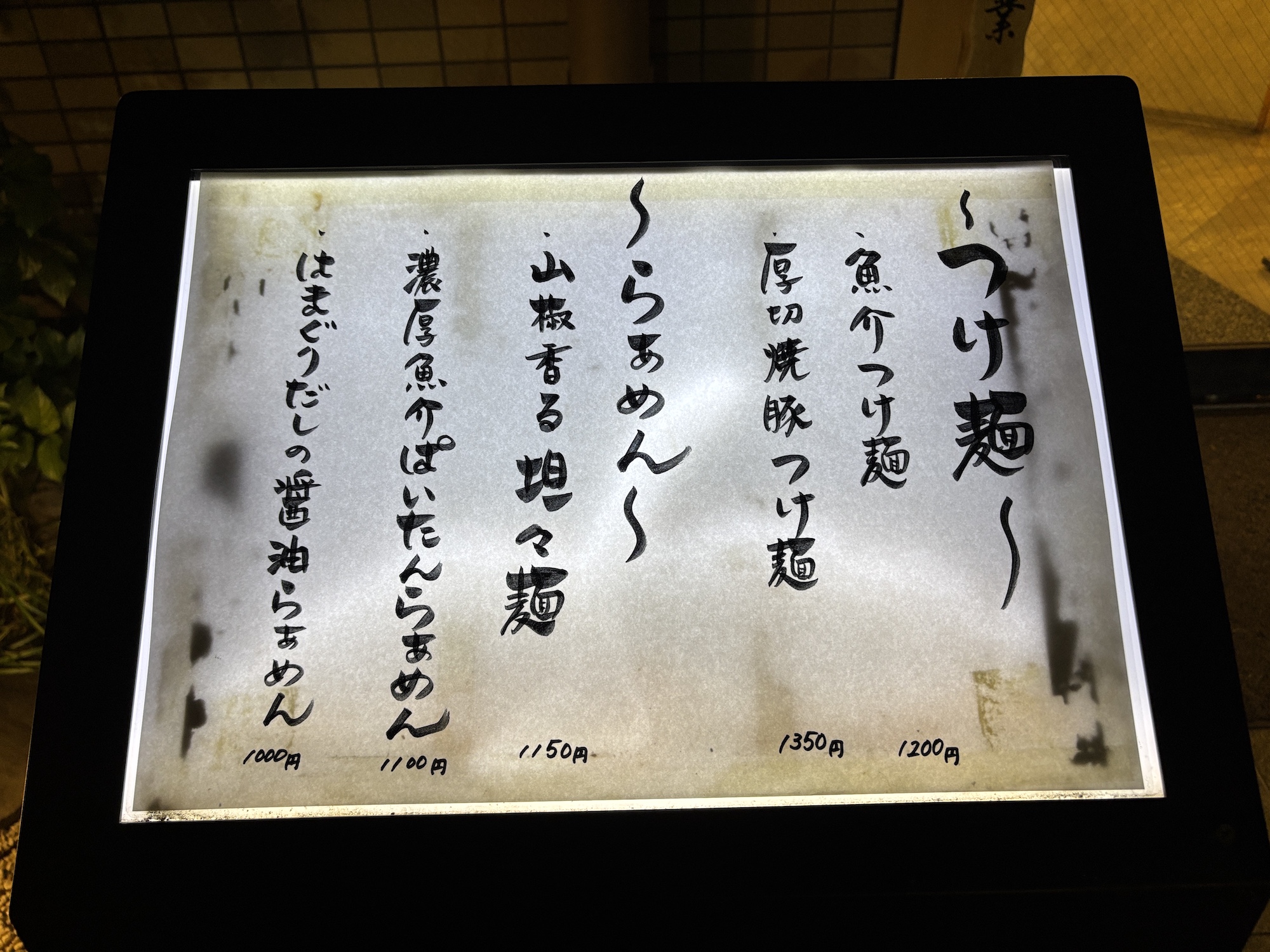 魚介つけ麺 1200円 はまぐりだし醤油らあめん 1000円