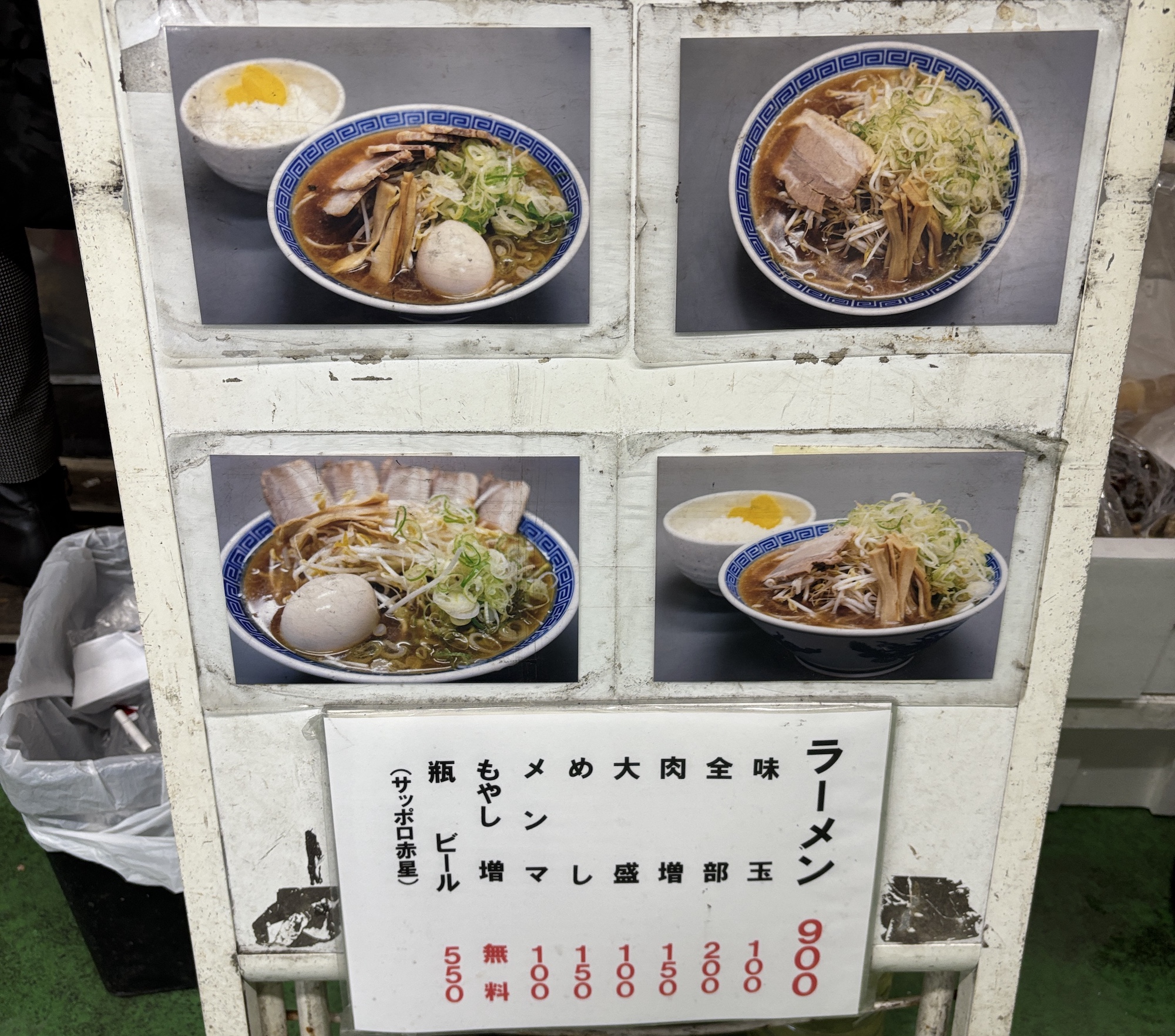 名古屋駅近くにある市場内の立ち食いラーメン店。名古屋市内に数店舗展開する如水グループでもある。3〜4人がギリギリ並べるくらいの立ち食いのカウンター席がある。朝の市場の活気ある雰囲気の中で朝ラーを食べれるので、かつて東京の築地にあった井上を思い出す。