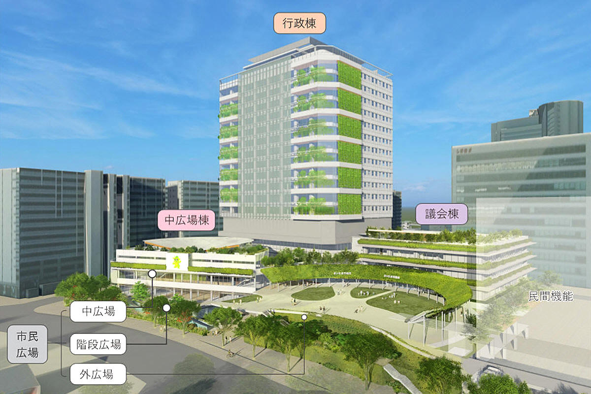 本庁舎は、全市的な企画や統一的な処理等を要する行政実務を担い、さいたま市民の代表者による議会機能を備えた自治体運営の要です。今後も人口減少や少子高齢化等の社会的問題、市民ニーズの多様化や災害の激甚化など、新たな行政課題に対応し、質の高い行政サービスを持続的に安定して提供するため、さいたま市新庁舎整備基本設計説明書(素案)として取りまとめました。