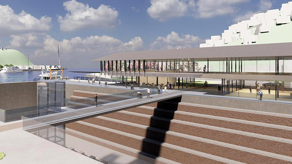 地上16階のホテル、マンション2棟のほか、商業施設、ドックブリッジなどを整備する計画で、整備費総額は1,000億円超を見込みます。2025年12月頃に事業者と土地を所有する関係者協議や土地利用規制緩和などを経て、2027年から実施設計、基盤整備工事に着手する見通し、2029年以降の供用開始を目指します。
