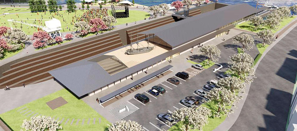 地上16階のホテル、マンション2棟のほか、商業施設、ドックブリッジなどを整備する計画で、整備費総額は1,000億円超を見込みます。2025年12月頃に事業者と土地を所有する関係者協議や土地利用規制緩和などを経て、2027年から実施設計、基盤整備工事に着手する見通し、2029年以降の供用開始を目指します。